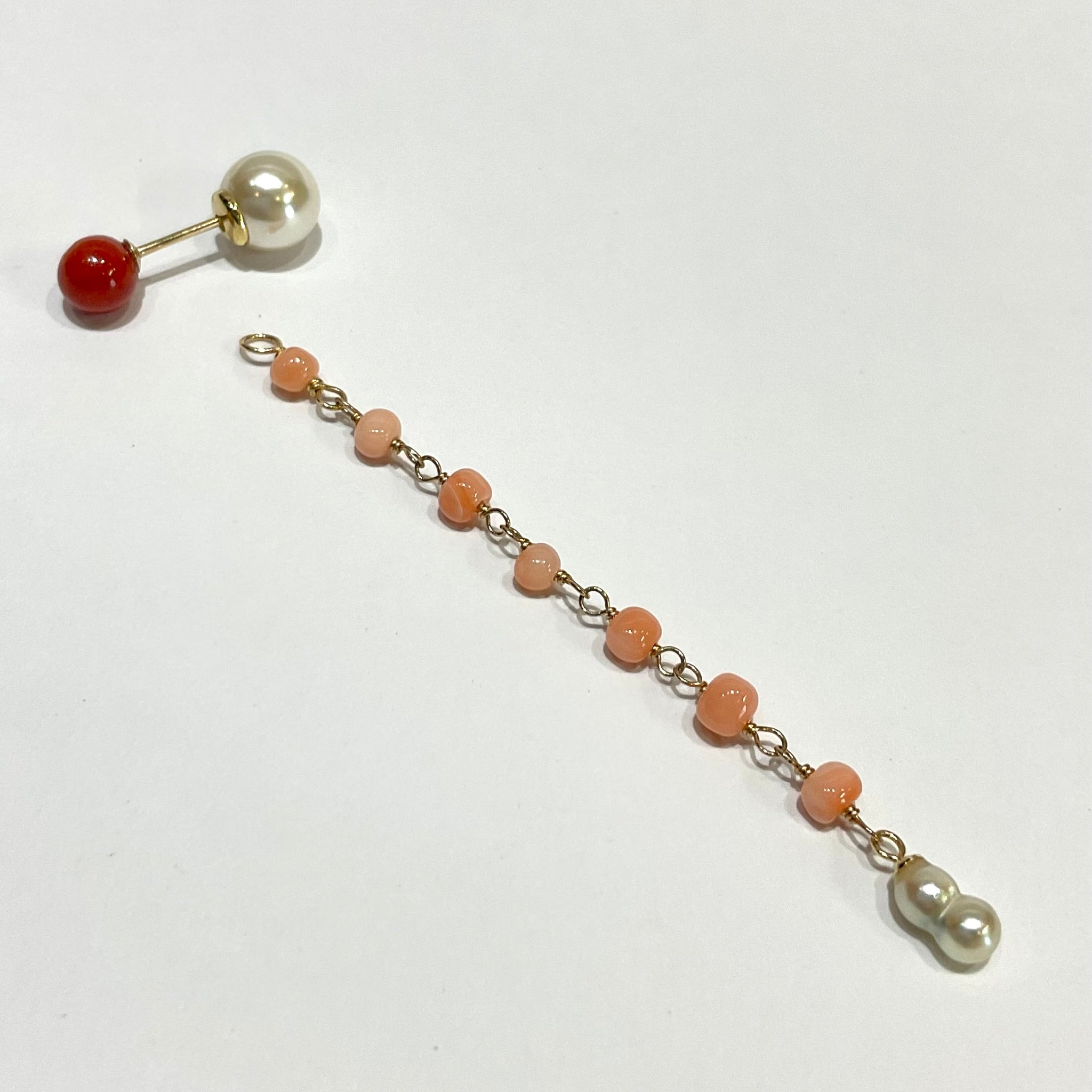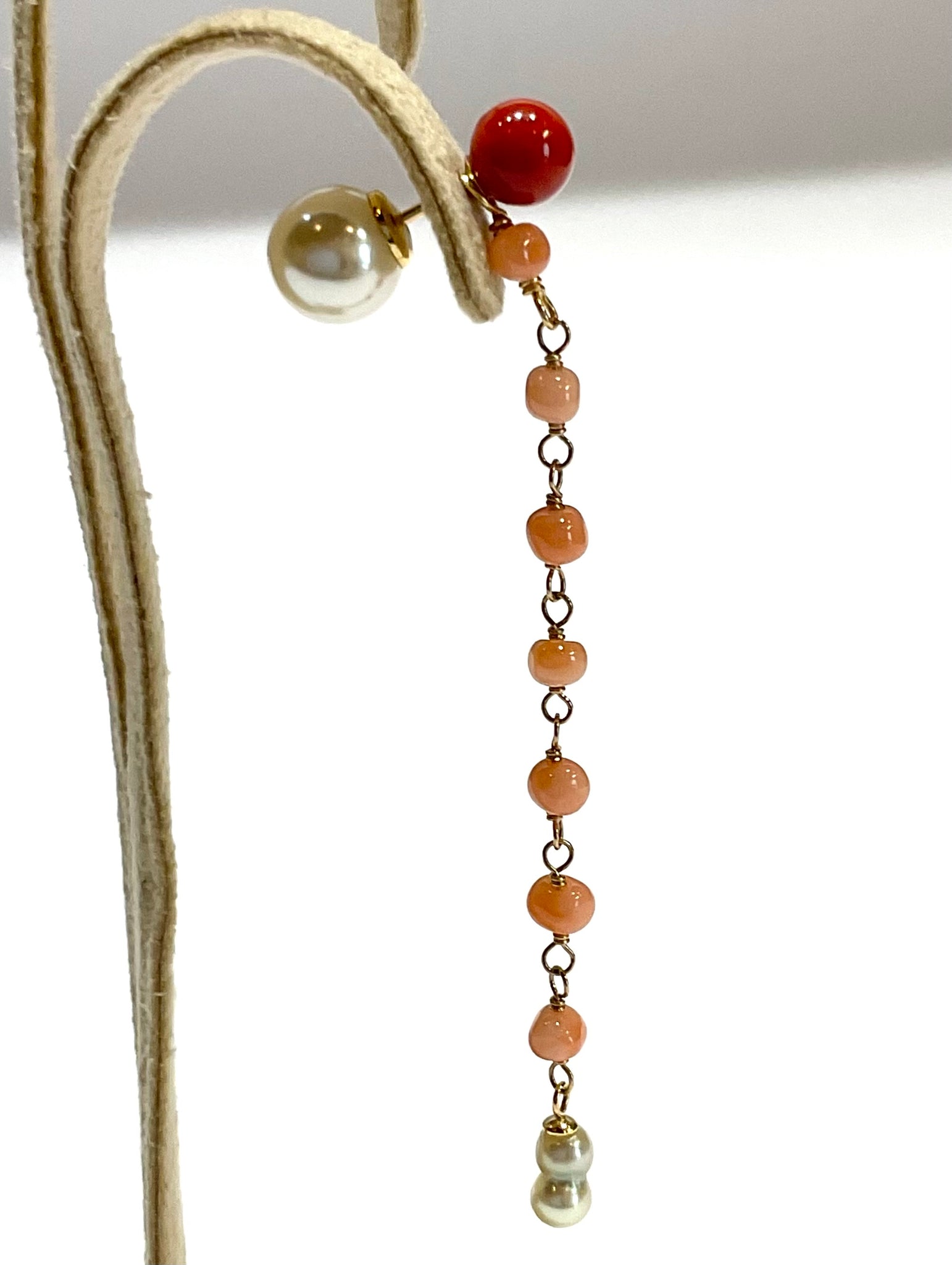 K18YG/K10YG Colors サルジ珊瑚ポストピアス(片耳用・チャーム付き)